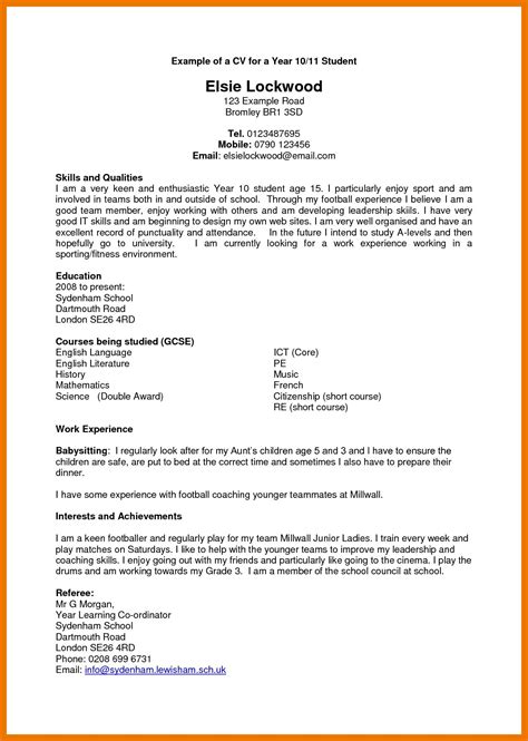 Web Example Of A Cv For A Year 10/11 Student.