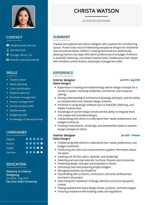 Ad create a perfect cv with our cv builder. Here's an example cv that you can use as inspiration to create your cv: Interior designer cv in 3 simple steps.