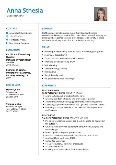 Web in 2021, the average salary for a veterinarian was $100,370. Web here are steps to follow when creating your veterinarian resume: According to the american veterinary medical association, 57% of american households own a pet.