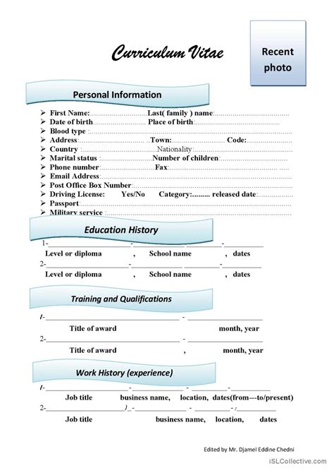 Web 5 Curriculum Vitae English Esl Worksheets Pdf & Doc.