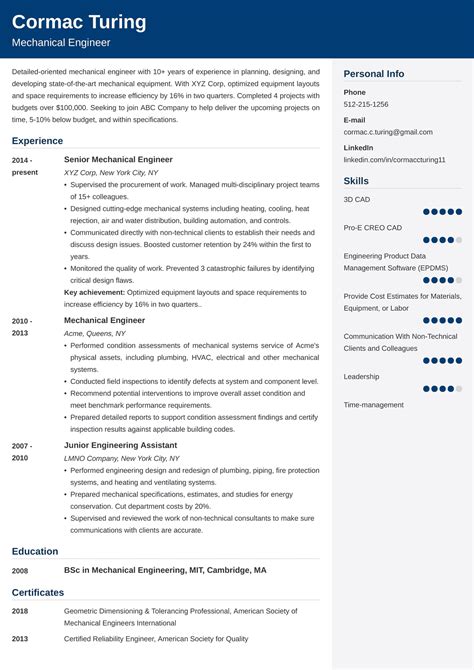 Web Engineering Cv Personal Statement Example Rigorous And Creative Mechanical Engineer With 5+ Years Of.