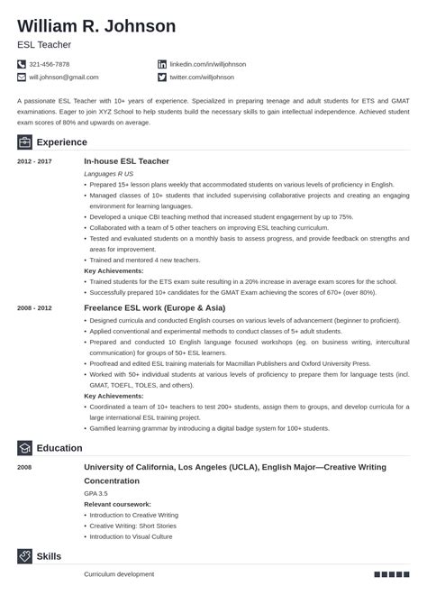 Web Example Cv For An Experienced English Teacher.