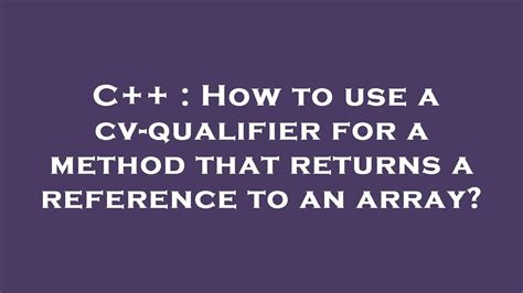 What Is A Cv Qualifier C++. It is made possible because member functions. Cannot initialize a parameter of type 'char*' with an lvalue of type 'double' in a template function using type conditional;. Web in c++, all const declarations must have initializers, except those referencing externally defined constants. Web cv is a sequence of const and volatile qualifiers, where either qualifier may appear at most once in the sequence.